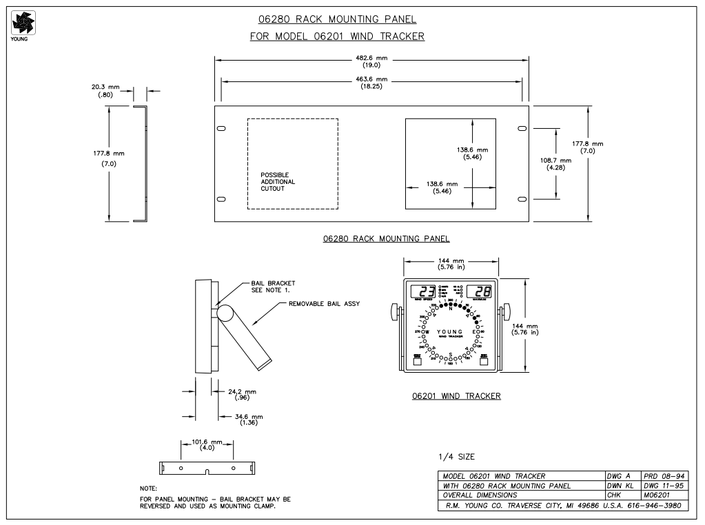 可選的型號06280機架安裝面板可安裝到一個標準的19“機架安裝儀表面板(型號06282機架安裝面板持有兩個顯示器)。