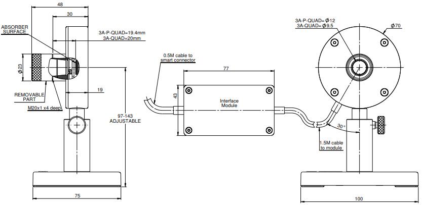 BeamTrack 系列 3A-P-QUAD 激光測量傳感器測量激光束位置以及功率和能量。它有一個 12mm 的孔徑,可以測量光束位置到 0.15mm 的精度。它測量 160μW 至 3W 的功率和 30μJ 至 2J 的能量。它具有覆蓋0.15至8μm光譜范圍的P型體積吸收器。該傳感器配有一根 1.5m 電纜,可將其連接到電子盒,另一根 0.5m 電纜可將電子盒連接到儀表或 PC 接口。