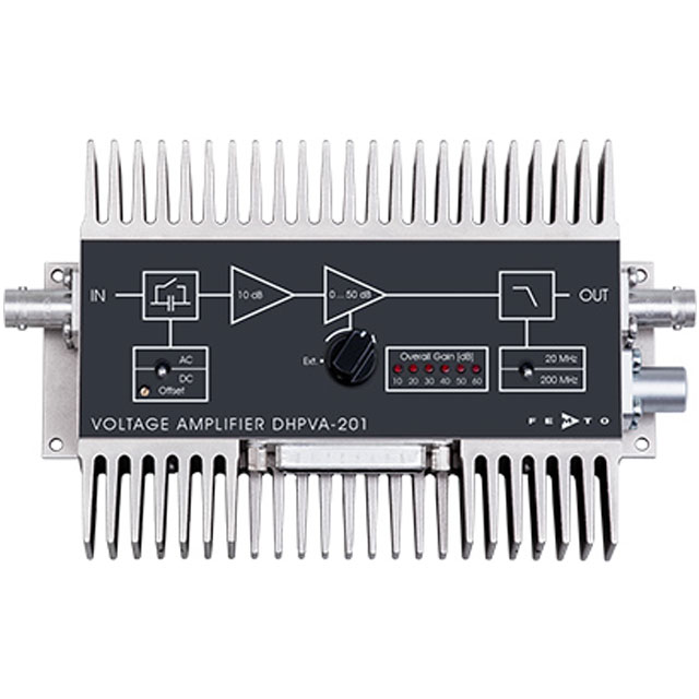 動態輸入電壓范圍:10 微伏至 300 毫伏FEMTO 選擇的多級放大概念避免了可編程衰減器或乘法增益級的缺點,其中動態范圍受限于主增益級的噪聲和漂移行為。因此,DHPVA 系列同樣適用于幅度為 100 μV 至 300 mV(70 dB 動態)的輸入信號。由于出色的 DC 穩定性,可以通過信號平均(平均)進一步提高動態,因此可以使用 10 μV 至 300 mV(90 dB 動態)的實際范圍。