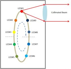 可選的聚焦模塊可以安裝在 LED 準(zhǔn)直器的前面,以將光聚焦到一個(gè)狹窄的點(diǎn)上,這是 LED 發(fā)射器的圖像。