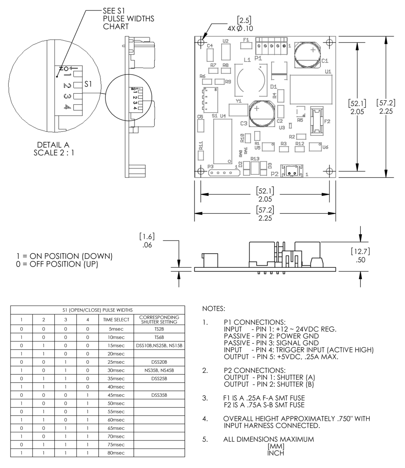 安裝需要連接到用戶提供的電源和輸入和輸出線束連接器,并使用板載 4 位鋼琴開關(guān)選擇打開和關(guān)閉脈沖持續(xù)時間。TTL 脈沖持續(xù)時間決定快門的曝光時間。