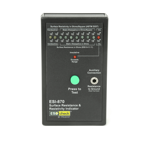 指示表面電阻 ESI-870 電阻/電阻率指示器是一種 LED 指示、寬范圍電阻測量儀器,具有廣泛的應用靈活性。它根據(jù) ANSI/ESD STM11.11 測量表面電阻,根據(jù) ASTM D-257 測量表面電阻率、接地電阻和點對點電阻。
