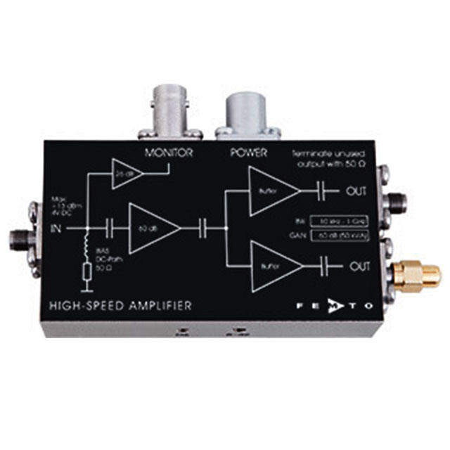HSA-Y除了 HSA-X 的功能外,HSA-Y 還配備了直流監視器輸出,可用于光電探測器校準或連續功率控制或低頻背景信號的測量。此外,HSA-Y 具有兩個相同的信號輸出,無需外部信號分離器即可實現信號控制或觸發。HSA-Y 系列提供各種型號,固定增益為 20、40 或 60 dB。