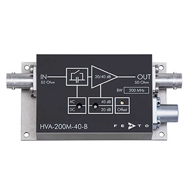 輸出阻抗 50 Ω。偏移量可通過微調器調節。輸出短路保護。通過 3 針 Lemo ®插座供電。配套連接器隨設備提供。可選電源 PS-15 可用。如需更多信息,請查看數據表或聯系 FEMTO。