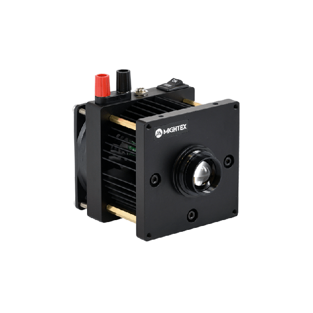 具有 30-50W 發射器的新型 H 型超高功率準直器 LED 光源已添加到產品組合中。這些新型準直器光源可產生市場領先的高達 3.3W 的光功率輸出,是我們現有的高功率 B 型準直器 LED 光源的 5 倍。LED 發射器直接安裝在準直器的金屬底座上,該底座還具有集成散熱器和冷卻風扇。這種配置很大限度地減少了 LED 發射器和散熱器之間的熱阻,從而更好地散熱。如果需要,可以調整準直透鏡以實現精確準直。調整后,鎖定環固定鏡頭位置。準直器已在工廠進行了預先調整。