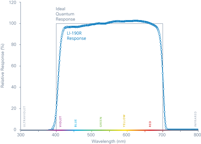 LI-190R響應(yīng)和以光子為單位的理想量子響應(yīng)