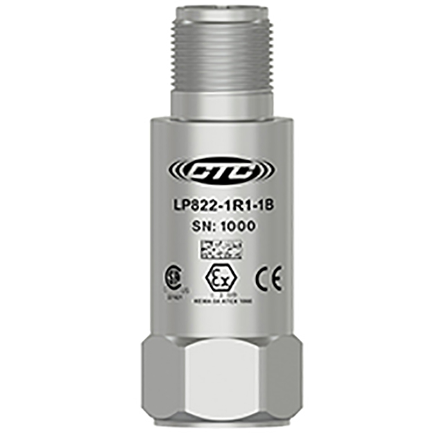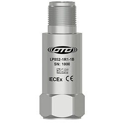 低電容,本質安全IEC認證(IECEX)環路功率傳感器,4-20 MA輸出與加速度中的振動成比例,頂部出口2針連接器