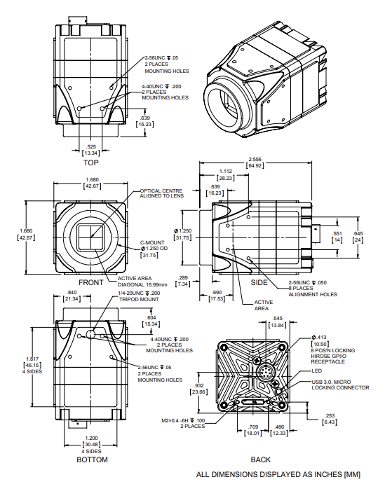 相機前端到傳感器的距離是多少?這款 C 接口標準相機的傳感器深度從相機正面到傳感器為 17.5 毫米。