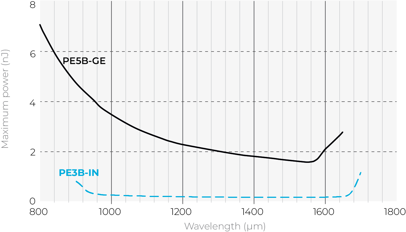 Gentec-EO PE3B-In-D0光電二極管探測器的激光能量測量高達 245 pJ。