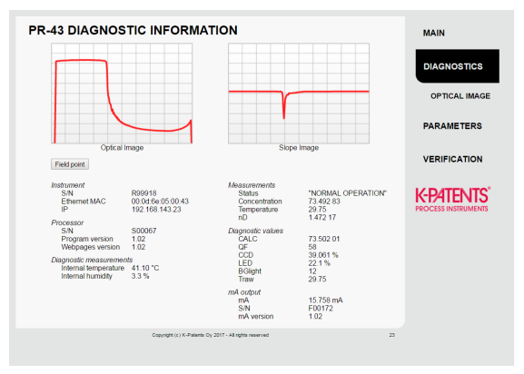 PR-43-PC 折光儀有一個帶有儀器主頁的內置網絡服務器。主頁允許通過以太網連接配置、監控、驗證和診斷折光儀。