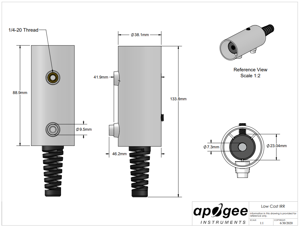 SIL-411具有SDI-12數(shù)字輸出和5米高質(zhì)量電纜,端接在預(yù)鍍錫尾纖引線中,便于連接到數(shù)據(jù)記錄器和控制器。該傳感器具有22°半角度視場,響應(yīng)時間為0.6秒。典型的應(yīng)用包括用于植物水分狀況估計的植物冠層溫度測量、用于確定結(jié)冰條件的路面溫度測量以及用于能量平衡研究的地表(土壤、植被、水、雪)溫度測量。