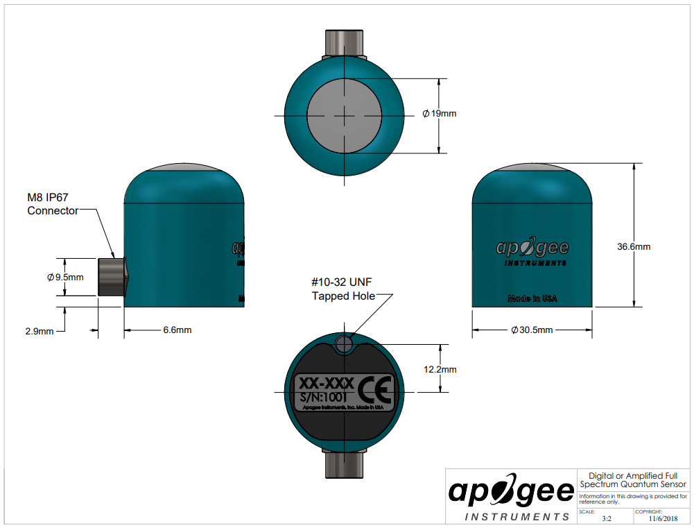 | 輸出(靈敏度) | 0.004 mA / μmol mˉ2 sˉ1 |