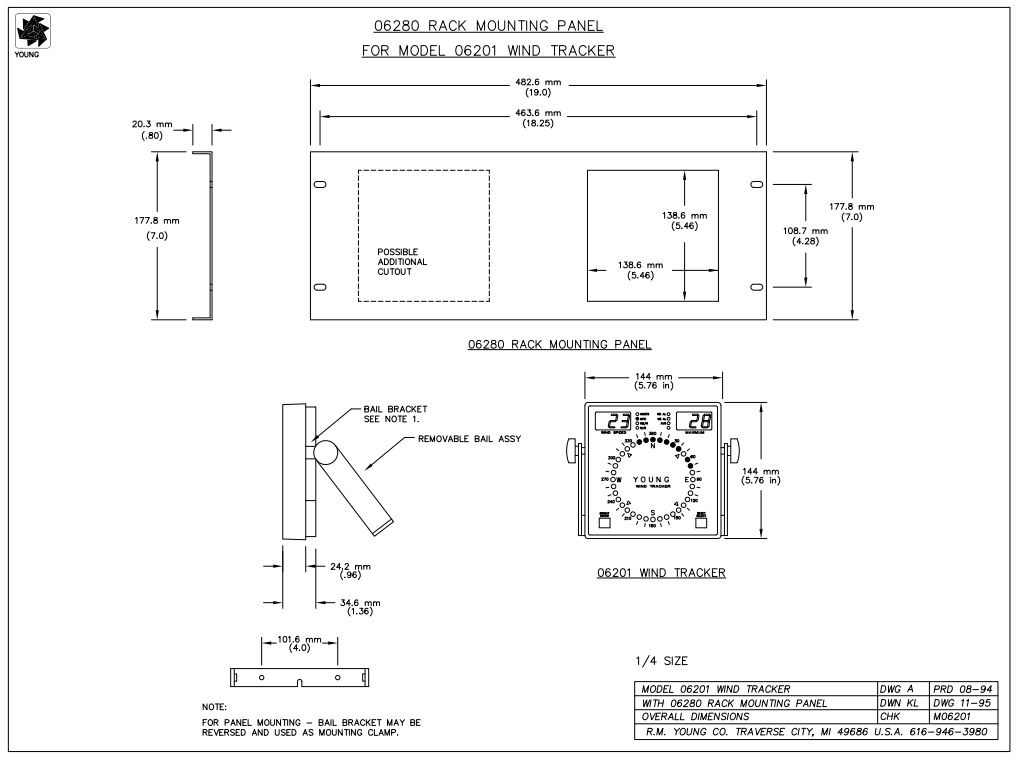 An optional Model 06280 Rack Mounting Panel is available for installation into a standard 19” rack mount instrumentation panel (Model 06282 Rack Mount Panel holds two displays).