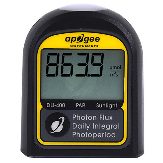 DLI-400 Daylight Meter:It is a new product in 2022, used to spot check the level of photosynthetically active radiation (PAR; 400 – 700 nm) and measure solar integration (DLI) and photoperiod. The DLI-400 is a low-cost option that is accurate only in sunlight and some broadband light sources. PAR, DLI and photoperiod affect plant growth and development. They are usually measured in greenhouses and growth chambers to help with light management and decision-making. DLI refers to the total amount of PAR or extended PAR (ePAR) incident on a plane within 24 hours, in moles per square meter per day. Photoperiod is the total incident time of PAR or ePAR within 24 hours, expressed in hours (h).