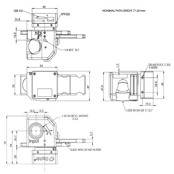 LBS-300s-UV beam splitter & neutral density filters combo + BeamGage Professional software, software license, 1" format 2752X2192 pixel camera pixel camera + NIST/National Lab traceable calibrated path length from top of unit to CCD array. Comes with USB cable and 3 ND filters.