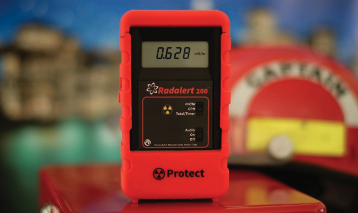 The Radalert 200 is a rugged solution for monitoring both ambient and elevated levels of ionizing radiation in challenging environments. Simplified user interface requires minimal training. Detects and measures alpha, beta, gamma, and X-radiation. Data is displayed in your choice of counts per minute (CPM), μSv/hr or mR/hr, or in accumulated counts. A red LED blinks and a beeper chirps with each count (can be muted). An audible alert sounds when the radiation reaches a user adjustable level.