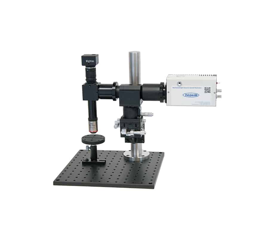The OASIS Micro is designed for in vivo experiments with a minimalist design. A heavy-duty precision XYZ stage is mounted on the support structure and the OASIS optical assembly is in turn mounted on the XYZ stage. The XYZ stage controls the lateral motion as well as the focus of the system.