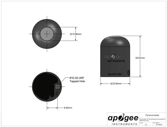| Calibration Factor (reciprocal of output) | 5 W mˉ2 per mV |