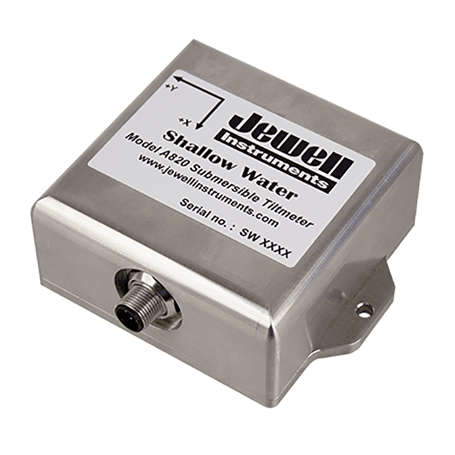 The model 820 Shallow Water is a high-precision submersible tiltmeter for use in fresh and saltwater applications. Using an absolute gravity-referenced electrolytic sensor, the 820 delivers superior measurement accuracy with virtually no long-term drift. High-gain units are sensitive to <0.0017 mm/m or better. Output options include analog (±5 VDC, ±10 VDC), current (4-20mA), and digital (RS-232 and RS-422). All units are rated to 200 meters (656.2 ft) waterproof for advanced protection from the elements. Use the 820 “Shallow Water” for structural monitoring, angle measurement and control, platform leveling, and more.
